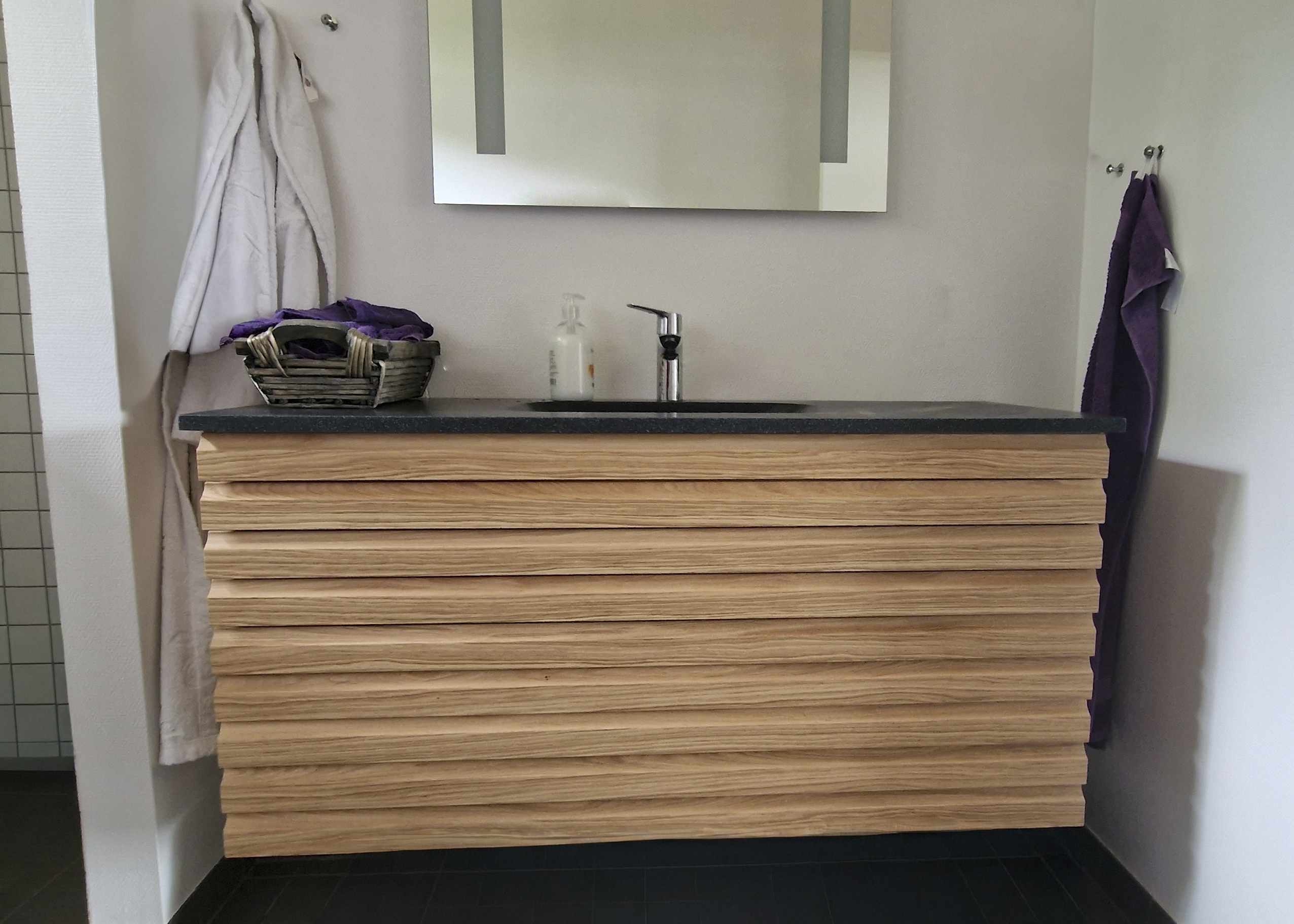 Trænger dit badeværelse til nyt liv? Med en badeværelsesrenovering kan du skabe et moderne badeværelsesdesign, der kombinerer funktion, komfort og stil. Udskift fliser, armaturer og belysning for et frisk udtryk, eller tilføj opbevaringsløsninger, der gør rummet mere praktisk. Vælg vandbesparende armaturer og energieffektive løsninger som en del af en bæredygtig renovering. Hos HB Køkken står vores erfarne tømrere og snedkere klar til at hjælpe dig med at forvandle dit badeværelse – uanset om du ønsker små forbedringer eller et helt nyt badeværelse med fokus på kvalitet, design og miljø.